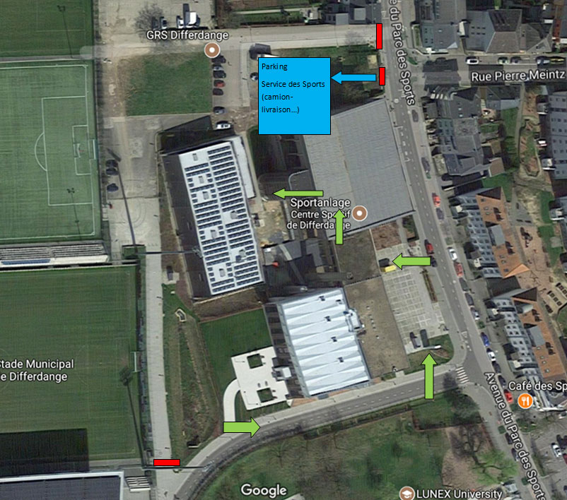 Voir l’adresse du Centre Sportif dans OpenStreetMaps ou dans le Geoportail.lu