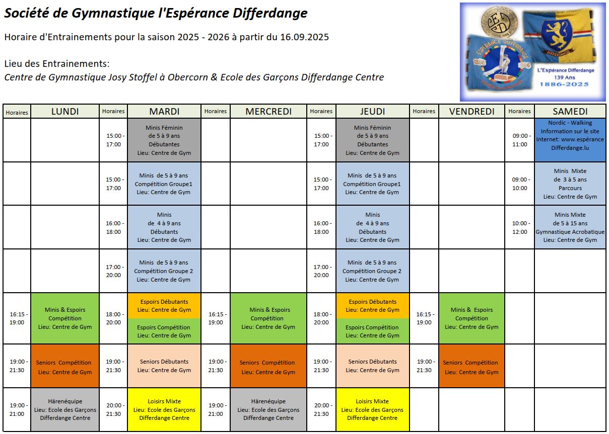 A noter, que l’Espérance Differdange organise régulièrement des stages (bénévoles) de perfectionnement pendant les vacances { Toussaint , Noël, Carnaval, Pâques, Pentecôte }.